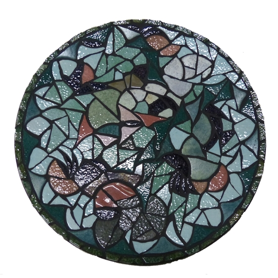 "Mothers Choice" is een schaal / wandbord in de serie "Old meets New" waarbij gebruik gemaakt wordt van recycled antiek keramiek van Emaux de Briare, gemixed met hedendaagse wandtegel.